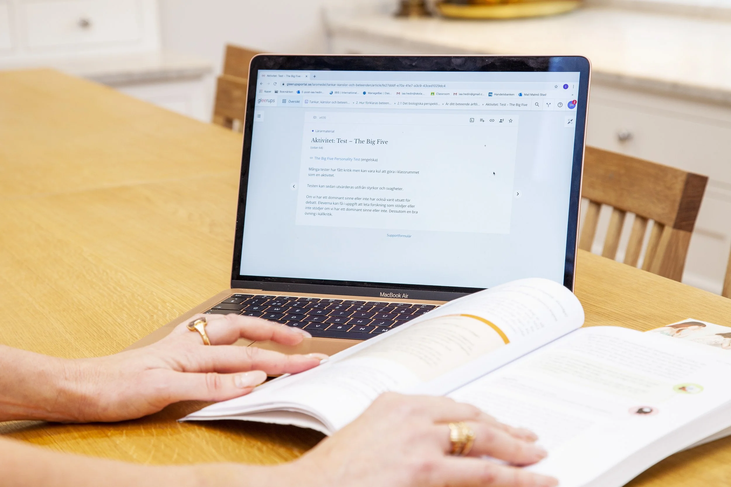 “Det finns bra digitala läromedel med förslag på olika upplägg och fördjupningsuppgifter. Vi använder NoK “Med nya ögon”, men tipsar även om Gleerups läromedel: Iaa Hedin’s “Tankar, känslor och beteende”, som jag personligen tycker är vassare”